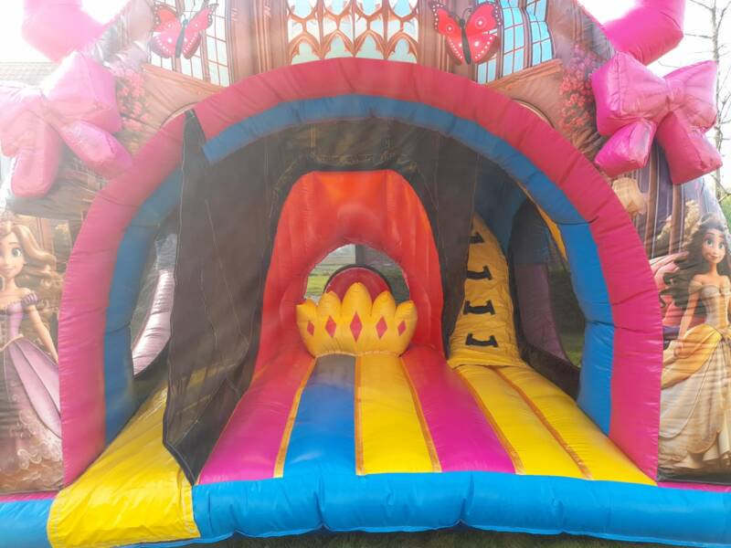 Droomt jouw kind van een magisch prinsessenfeest? Ons prinsessen-springkasteel met steile glijbaan maakt elke verjaardag, communie of buurtactiviteit onvergetelijk! 🎉 Dit betoverende springkasteel combineert veilig springplezier, een adembenemende glijbaan 🛝 én – voor wie dat wenst – een ingebouwde lichtshow en krachtige muziekbox 🎵. Zo verandert jouw tuin in één klap in een echt sprookjeskasteel 👑.